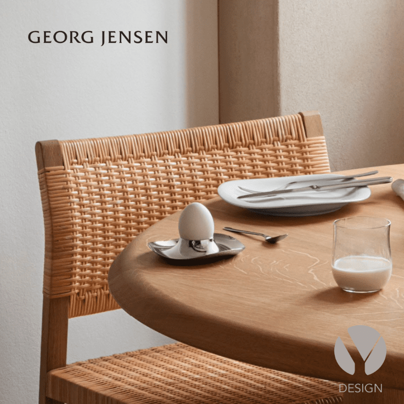 Cobra æggebægrene former sig med elegance og er lige så praktiske, som de er smukke. De flydende linjer danner en forhøjet kant, som gør æggebægrene nemme at bære, og under måltidet kan æggeskallerne ligge på den brede tallerken formede bund.