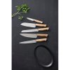 Knivsættet med kokkekniv, brødkniv, filetkniv, santokukniv og urtekniv gør det nemt at kreere velsmagende retter. Knivbladene er udført i rustfrit kvalitetsstål og håndtagene i olieret eg, som ved brug vil udvikle patina og blot blive smukkere, jo mere knivene bruges. Træhåndtagene er udformet af ét stykke træ og er behagelige at holde om. Santokuknivens blad er designet med luftskær, der sørger for, at det afskårne ikke sætter sig fast på bladet.